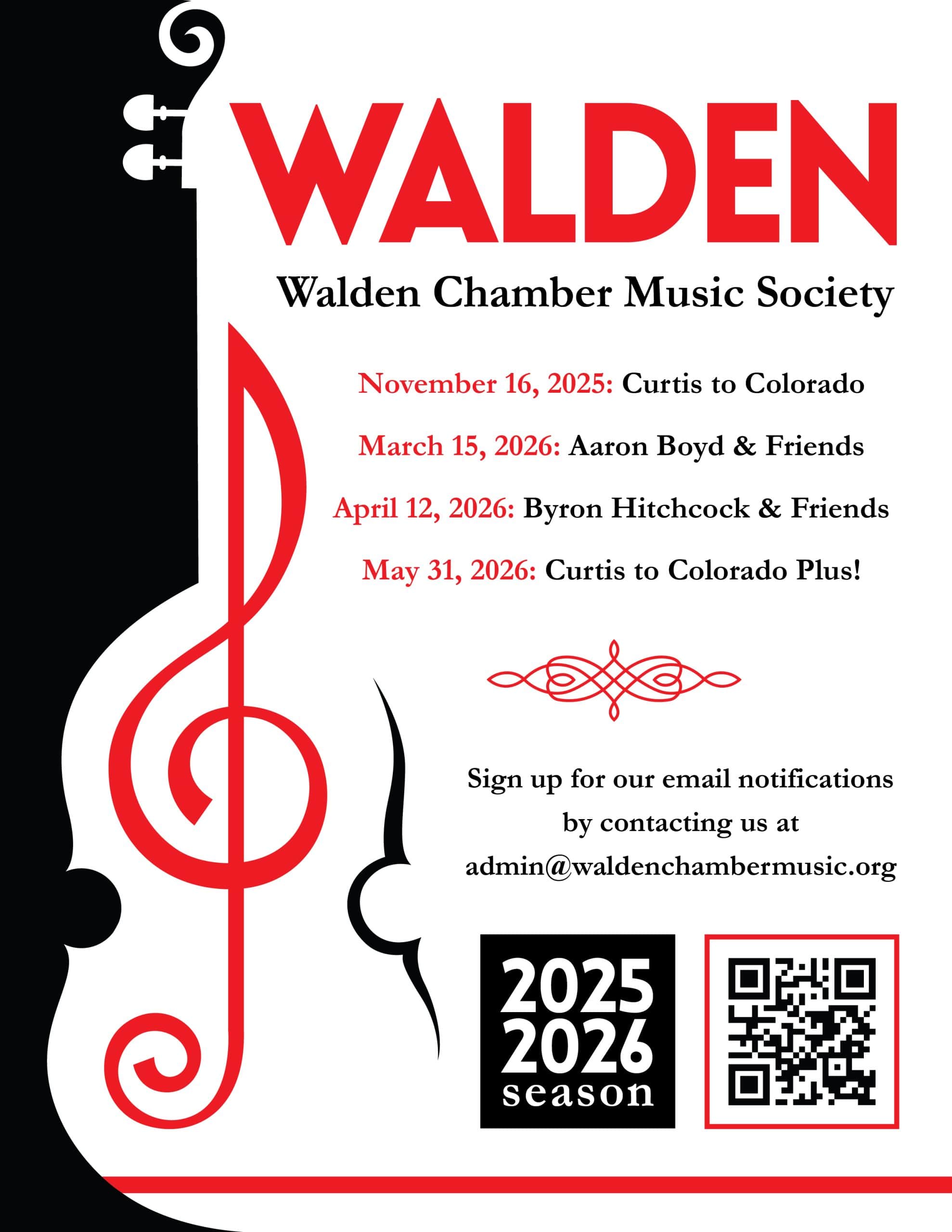 We are selling 2015-26 concert season subscriptions until early November, when we will start offering individual concert tickets for sale. For more information, please email us at admin@waldenchambermusic.org.